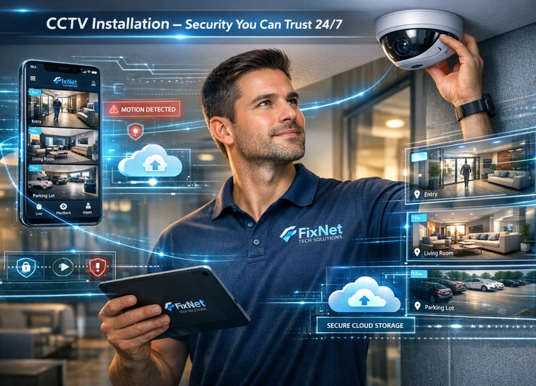 We install security cameras inside or outside your home or business, connect them to your phone, and show you how to monitor everything easily. CCTV installation is important because feeling safe is priceless. Whether you want to watch your kids, protect your store, or simply know what happens when you’re away, our cameras give you peace of mind 24/7.